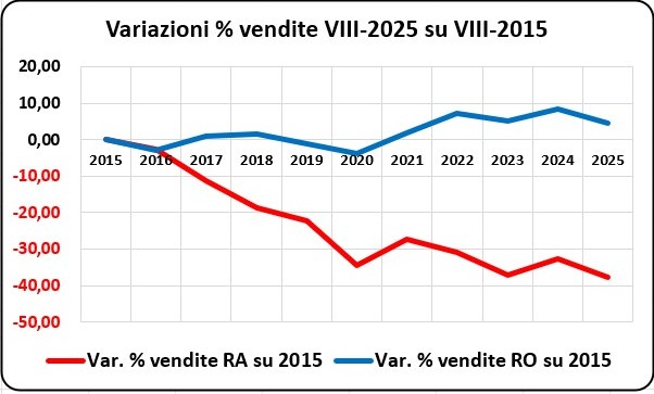 VENDITE GENNAIO-AGOSTO 2025 VS/ 2024 – COM’È ANDATO IL MESE DI AGOSTO