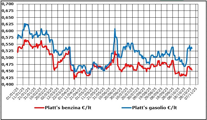 Le quotazioni giornaliere dei fondamentali di mercato [quotazione Brent e prodotti finiti Mediterraneo, cambio euro/dollaro], i prezzi giornalieri medi nazionali di benzina e gasolio in Italia nella rete colorata di marchio nonché nella rete no-logo, nelle modalità servito e self, gpl, metano e gnl nelle modalità servito e self, ed il prezzo nel circuito extra rete di benzina e gasolio per macroaree geografiche.