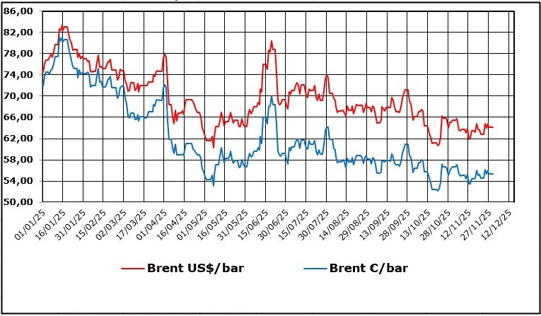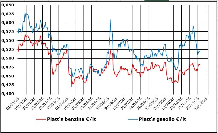 PREZZI GIORNALIERI MEDI NAZIONALI – GENNAIO-NOVEMBRE 2025