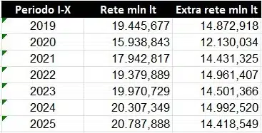PERIODO GENNAIO-OTTOBRE ANNI DAL 2019 AL 2025 MLN LITRI – VENDITE RETE ED EXTRA RETE