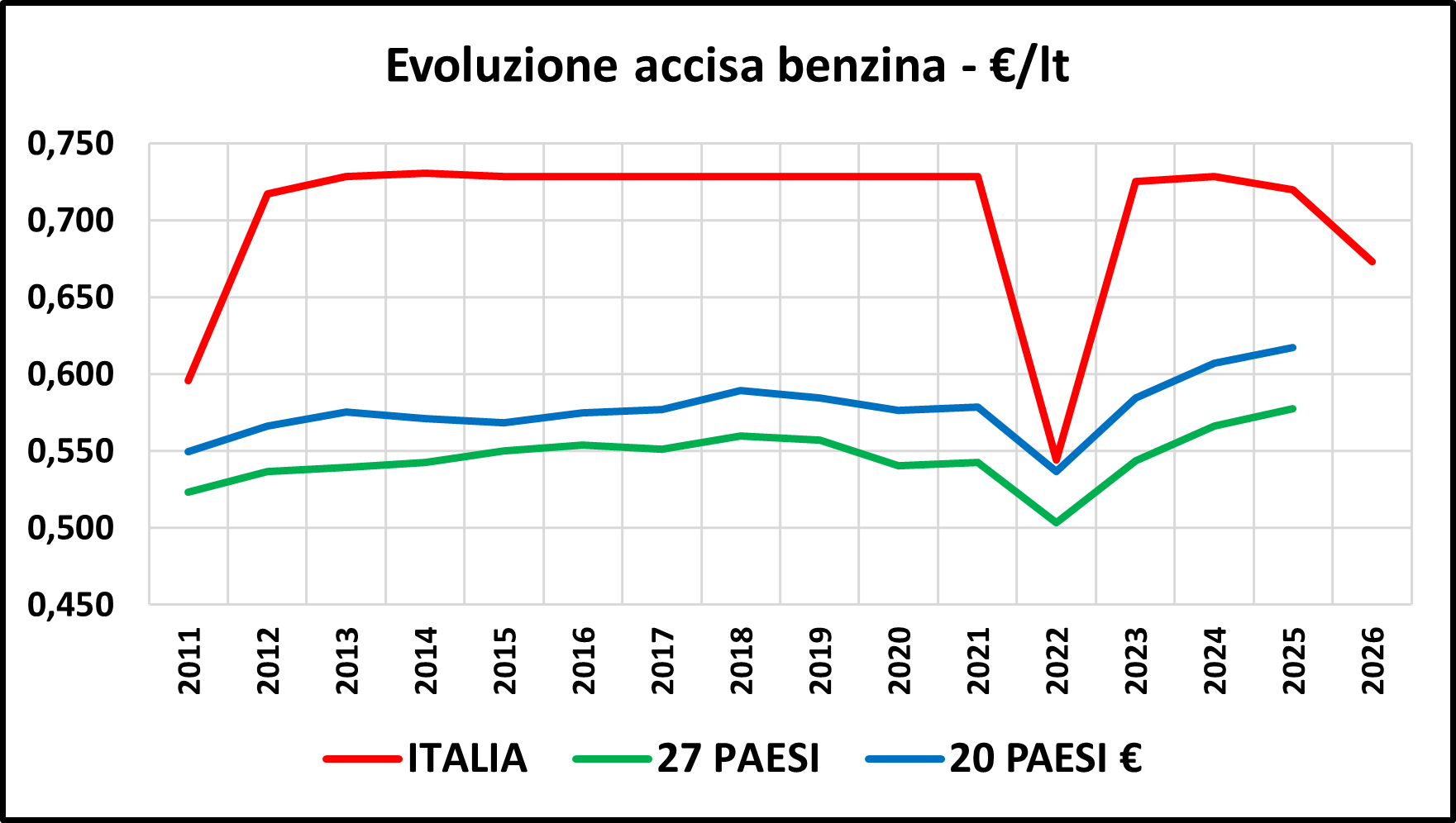 VARIAZIONI ACCISE BENZINA E GASOLIO DAL 1° GENNAIO 2026 – NOTA FIGISC