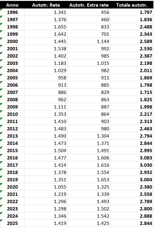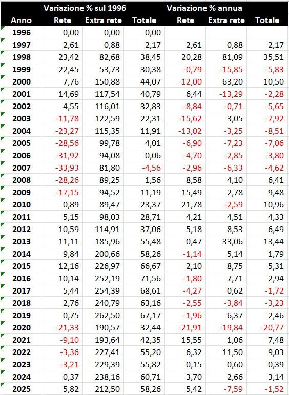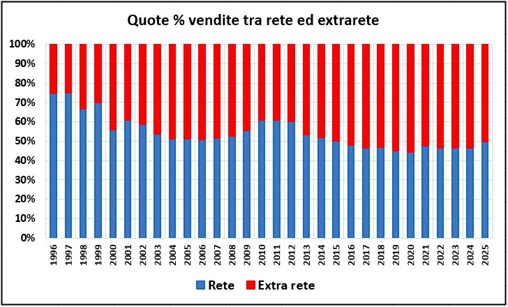 VENDITE DEI PRODOTTI (SOMMA DI RETE ED EXTRA RETE) 1996-2025 – MILIONI LT.