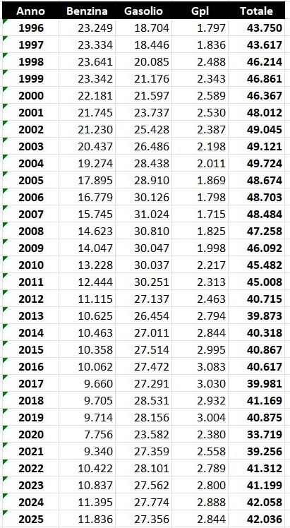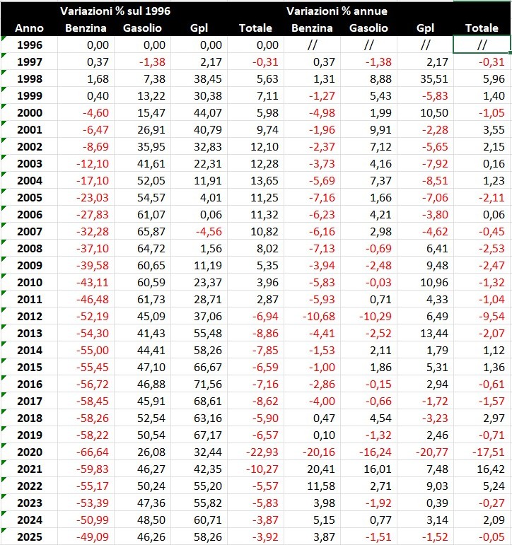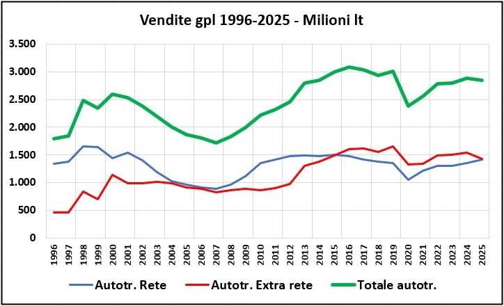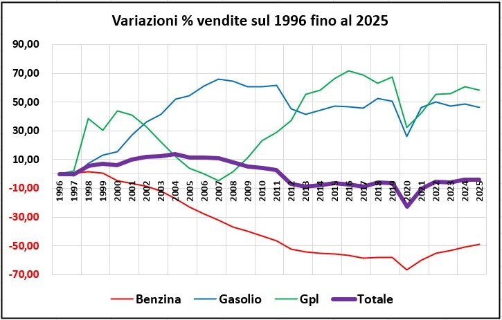 VENDITE GPL E MIX DEI CONSUMI (BENZINA, GASOLIO, GPL) – 1996-2025