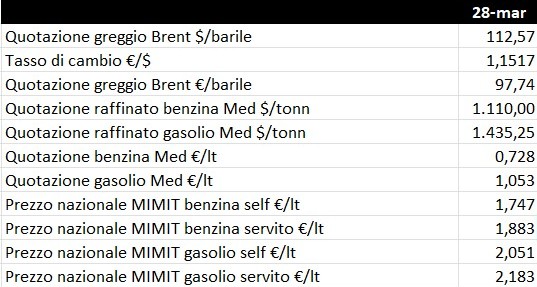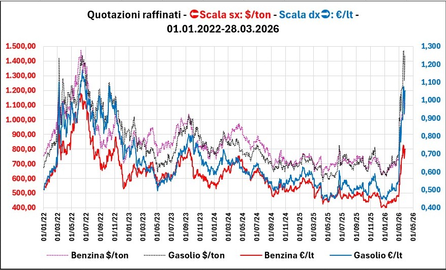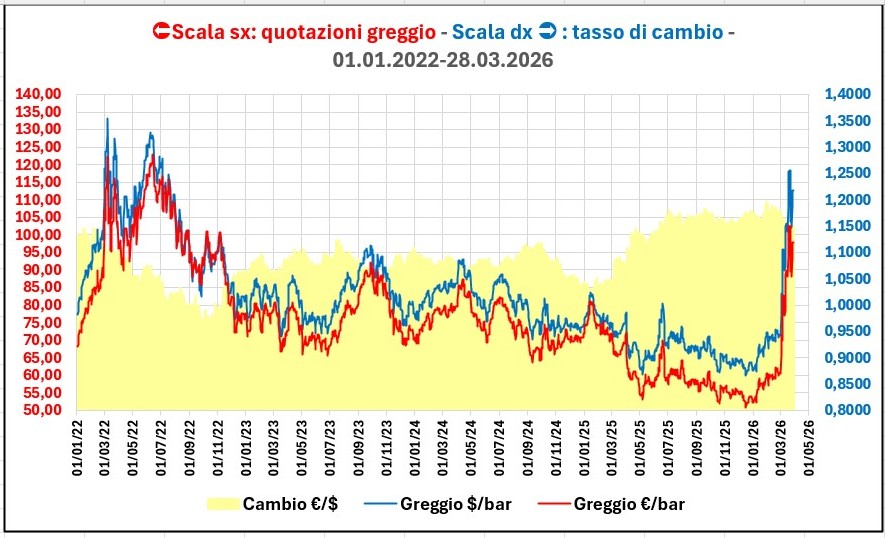 PREZZI, QUOTAZIONI GREGGIO E RAFFINATI, TASSO DI CAMBIO – 01.01.2022 – 28.03.2026
