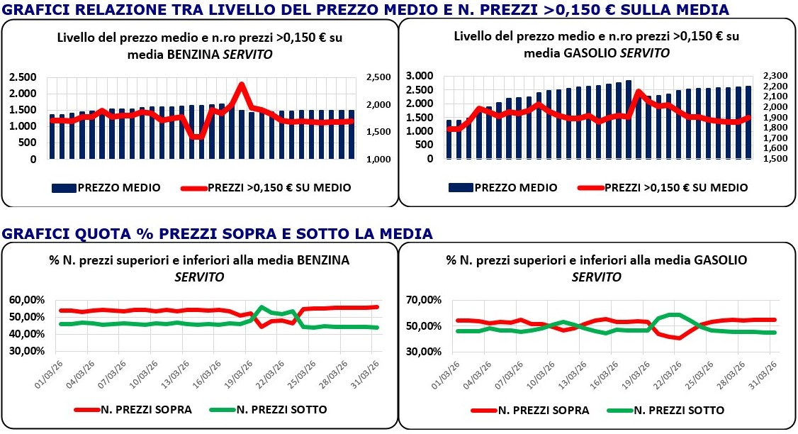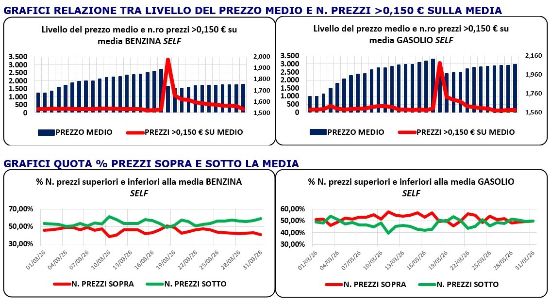 IL PREZZO MEDIO NAZIONALE BENZINA E GASOLIO SELF E SERVITO – MEDIA MARZO 2026 – HIGHLIGHTS OPEN DATA MIMIT