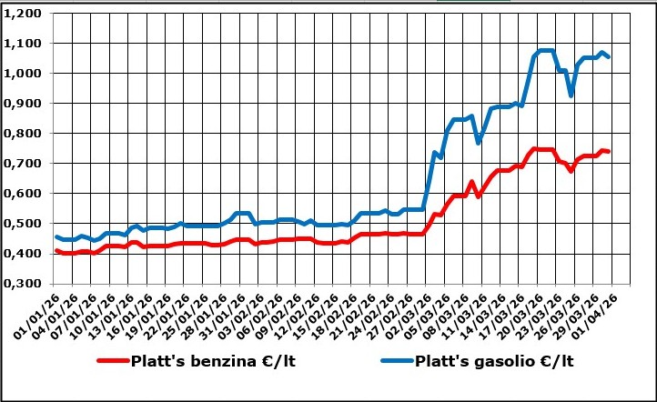 PREZZI GIORNALIERI MEDI NAZIONALI – GENNAIO-MARZO 2026